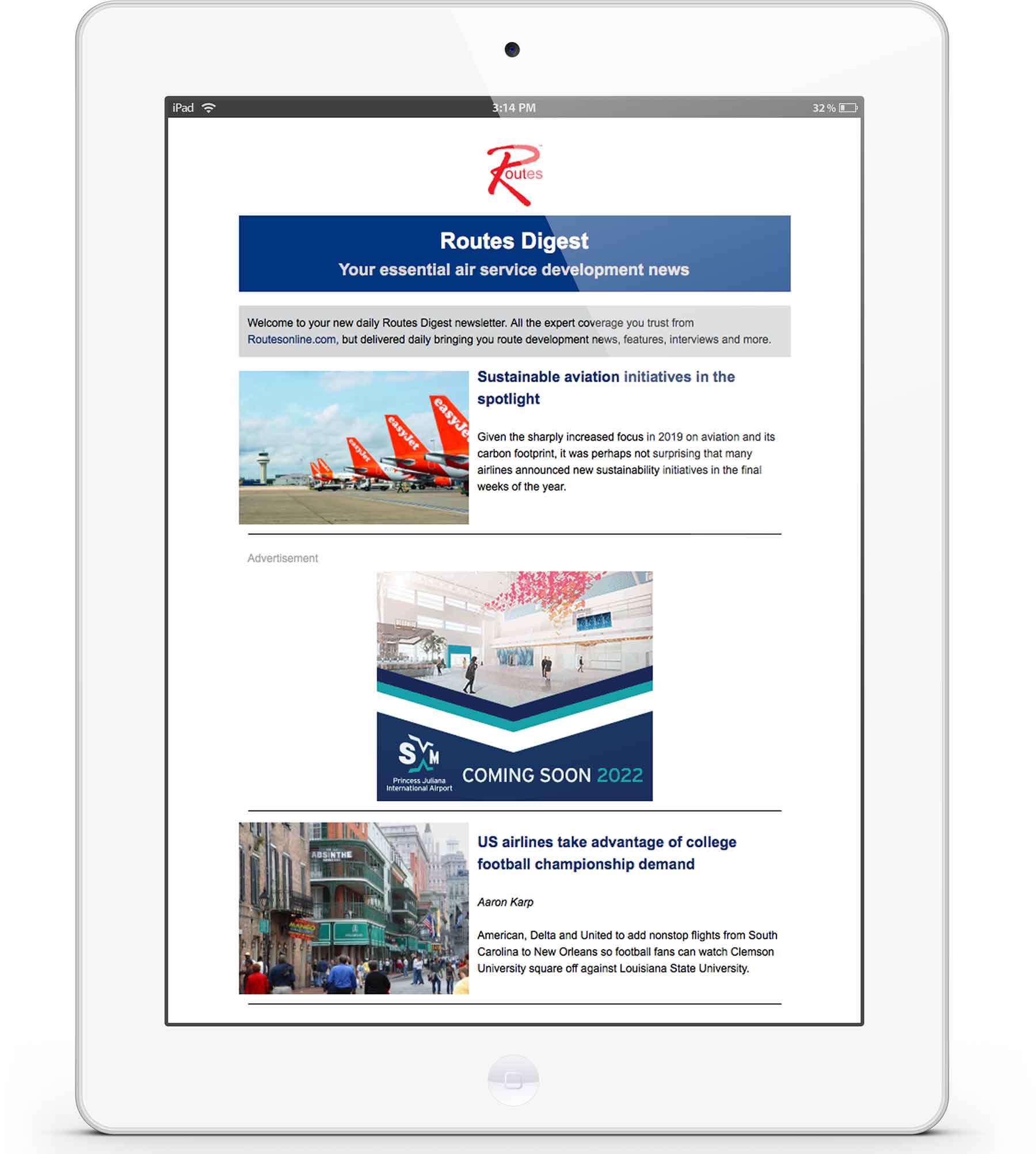 30,000 air transport professionals, including network executives, receive this daily newsletter that contains critical and relevant content.